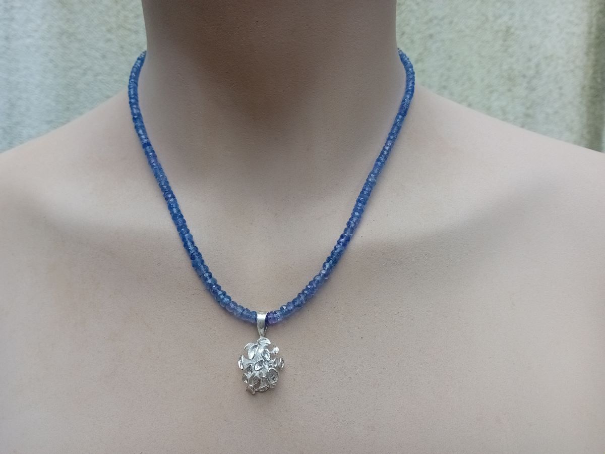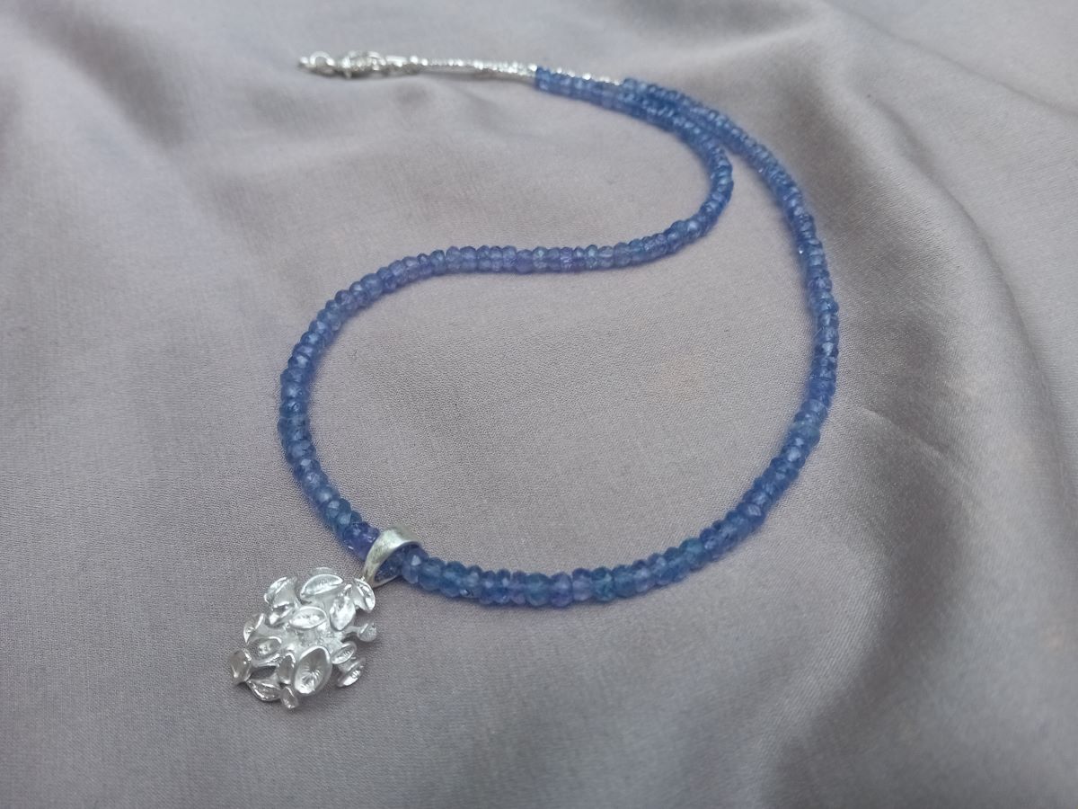 Náhrdelník tanzanit se stříbrným květem korálu 2